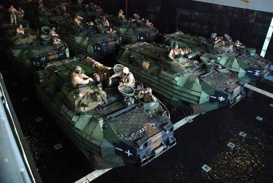Anyway, our primary purpose, our only purpose, our whole raison d’être is to ferry Marines about, dropping them and their AAV’s ‘Amphibious Assault Vehicles’ off at various beaches throughout the region.